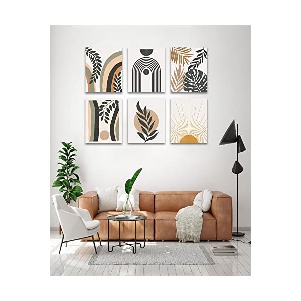 ☀️ BOHO WALL ART -Inspired by boho style and minimalism, we have incorporated abstract elements such as sun, moon, leaves, mountains to design this boho style artwork. Will be the perfect art decoration for your room.