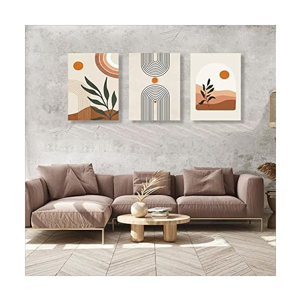 【Framed Boho Wall Art】The Size of the boho wall decor set is: 12x16inch (30x40cmx3pcs). Nature abstract illustrations, simple geometric lines, combined with orange and beige color to present a strong Bohemian style. The mid-century modern wall art prints is the best choice for Housewarming parties or gallery decoration.