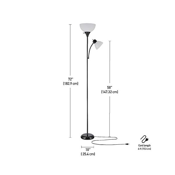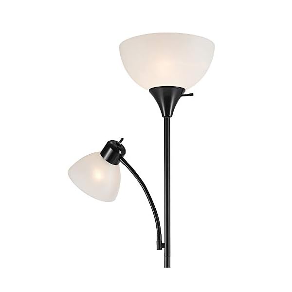 Globe Electric 67135 72″ Torchiere Floor Lamp + Adjustable Reading Light, Matte Black, Frosted Plastic Shade, 3-Step Rotary Switch on Floor Lamp Socket, Home Improvement, Home Office Accessories