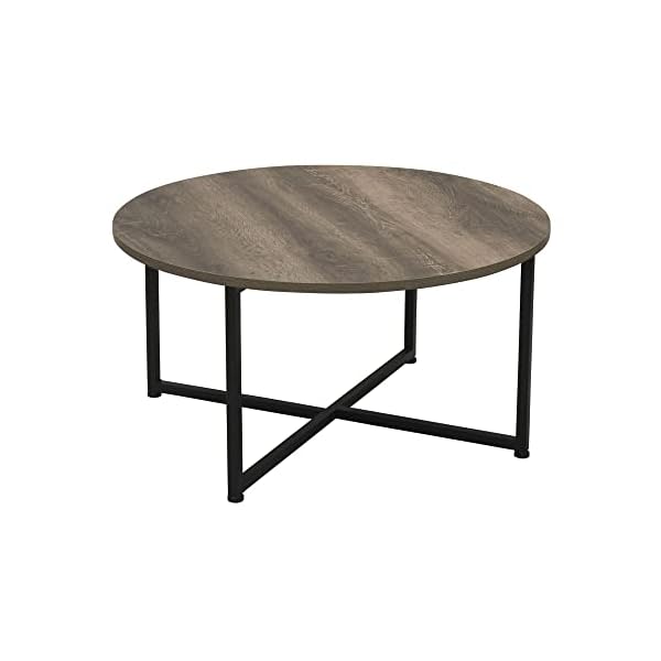 Round Coffee Table With Strong Metal Frame and Distressed Ashwood Decorative Top