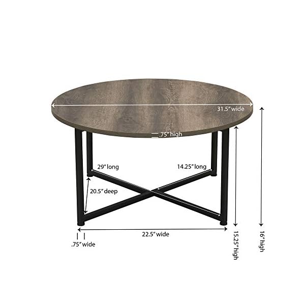 Household Essentials Grey Top Black Frame Ashwood Round Coffee Table, 31.5 x 31.5
