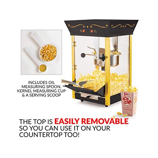 32 CUPS OF POPCORN – Whether movie time or snack time, this unit pops up to 32 cups of movie theater-style popcorn per batch to keep popcorn buckets full